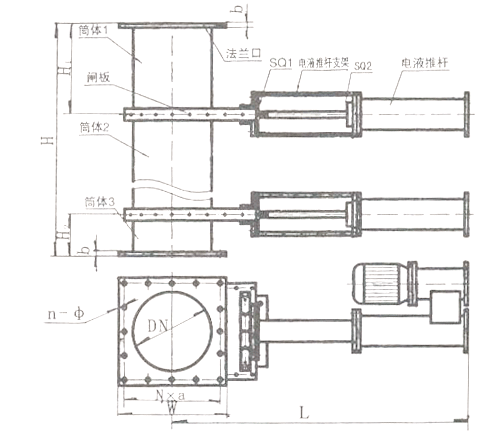 電液動金屬硬密封卸灰閥門示意圖