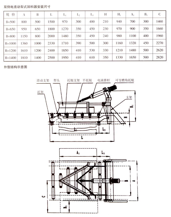 該產(chǎn)品進(jìn)一步完善了原ZNX型卸料器的不足之處,由于改用了雙犁頭、犁頭鎖緊裝置和新型的電液推桿,克服了卸料器犁料不盡、刮皮帶以及電動推桿過載能力差、常燒毀電機(jī)、頂彎絲桿、機(jī)械易損壞等缺點(diǎn),為目前國內(nèi)先進(jìn)的一種卸料器。本機(jī)設(shè)計合理,損傷維修簡便,可就近或遠(yuǎn)距離控制,廣泛應(yīng)用于電力、冶金、煤炭、化工、建材和港口碼頭等輸送行業(yè)中。